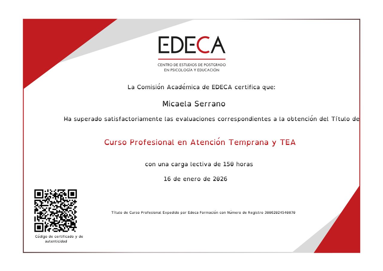 Soy Micaela, psicóloga sanitaria e integradora social. Me considero una profesional cercana, empática y con un interés genuino en comprender la experiencia de cada persona.