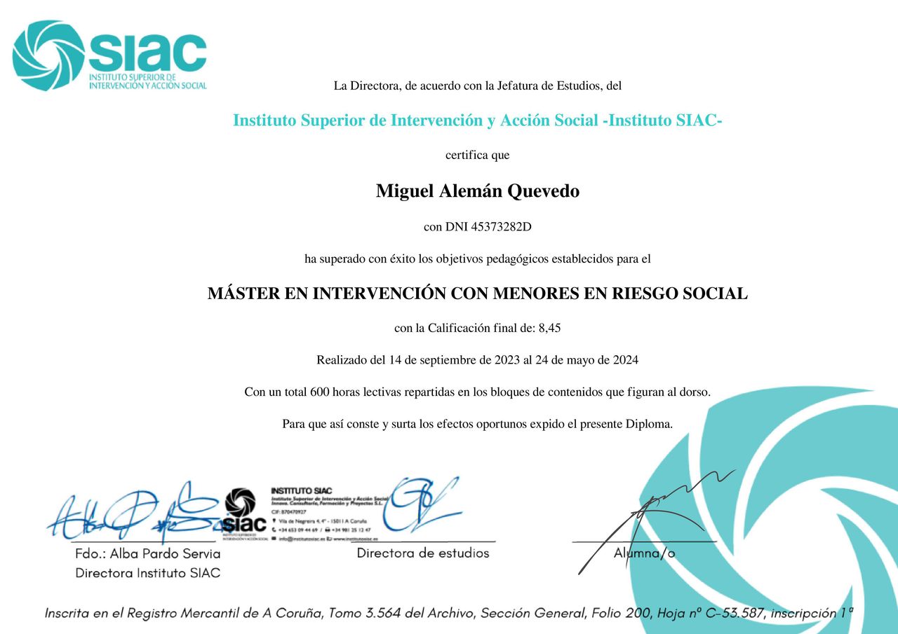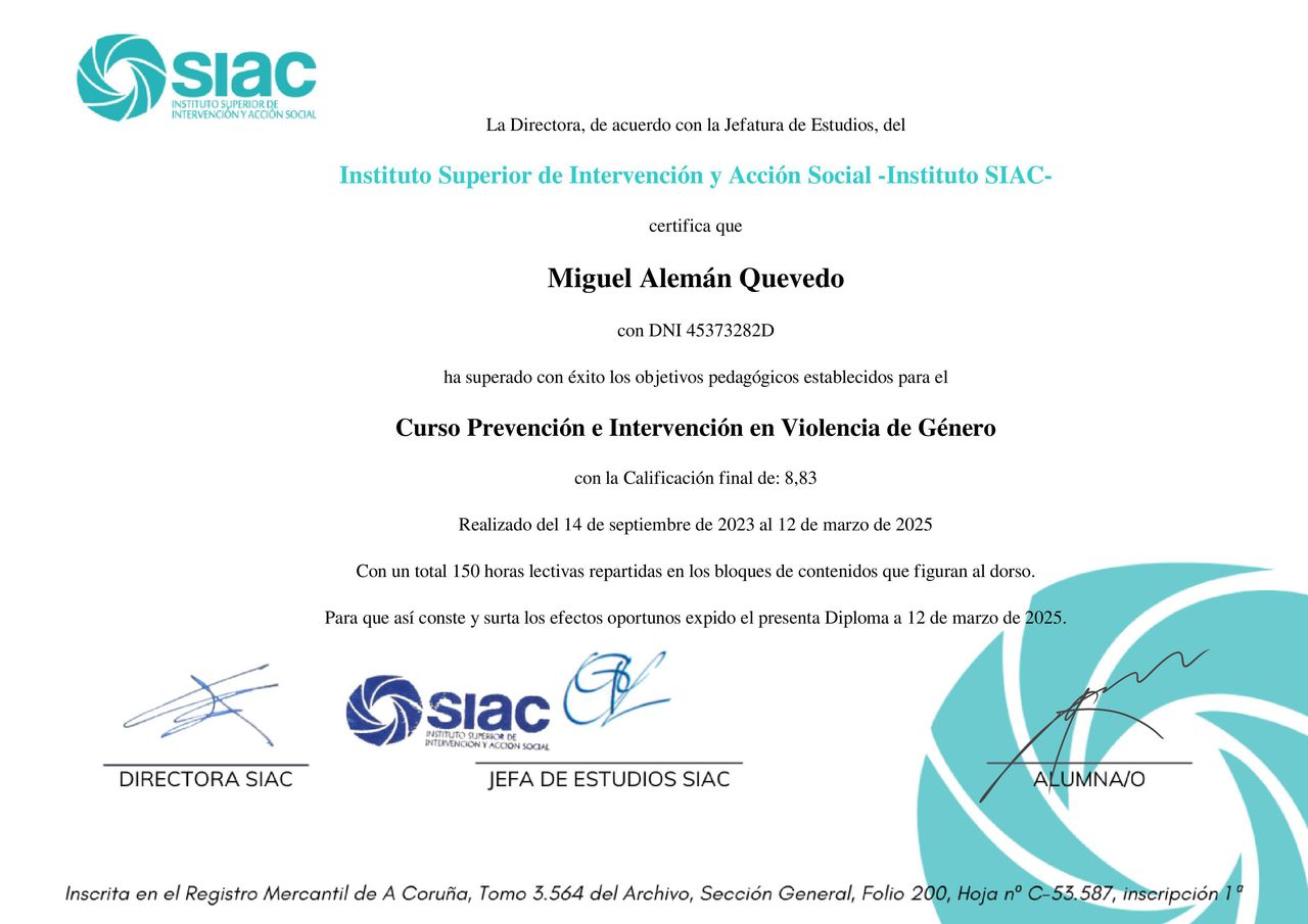 ¿Para cuándo podría visitarme con Miguel Alemán Quevedo?A veces Miguel Alemán Quevedo tiene algunas horas disponibles dentro de la misma semana o para la siguiente. Consulta su calendario: verás la primera hora que tiene disponible, ya que se actualiza en tiempo real. Si no te va bien esa primera hora, comprueba otros días. La reserva siempre es inmediata y gratuita.