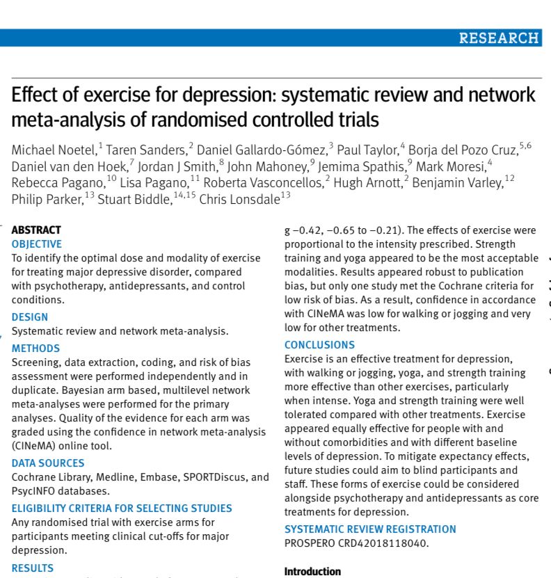 Un reciente meta-análisis (un estudio sobre muchos estudios) corrobora los beneficios del ejercicio físico en la depresión.
