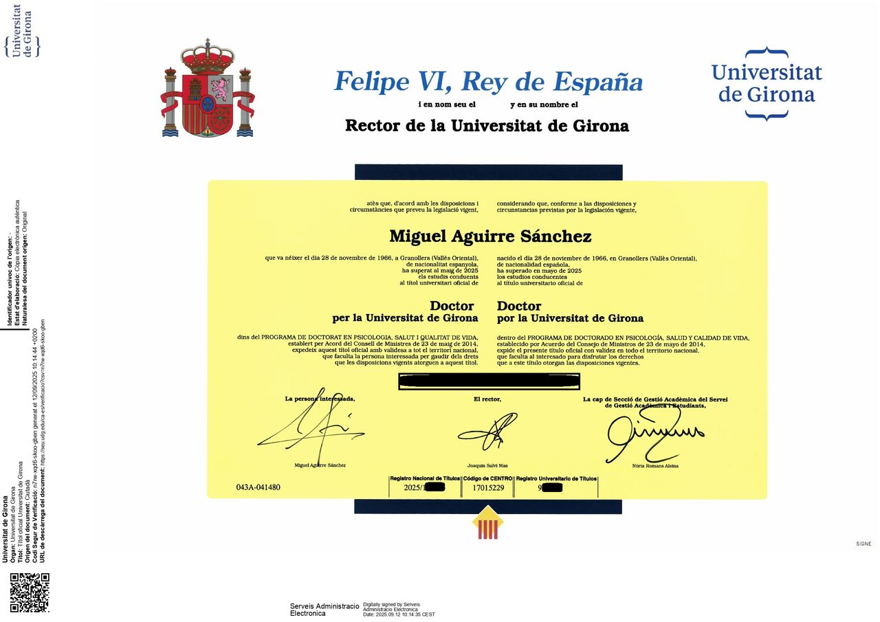 Soy profesor en distintas instituciones: IQS Executive (Institut Químic de Sarrià), y Universitat Internacional de València (VIU), donde imparto asignaturas como el Trabajo Final de Grado en Psicología y el Máster en Psicología General Sanitaria.