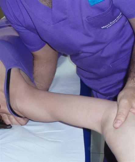 Es necesario que acuda a Fisioterapia para tratar manualmente la articulación y aplicar medidas analgésicas. Si realiza trabajo con cargas, elimine de momento todo aquéllo que reproduzca su dolor de forma importante, y si el dolor lo permite continúe con su actividad. La banda de compresión no aporta beneficio.