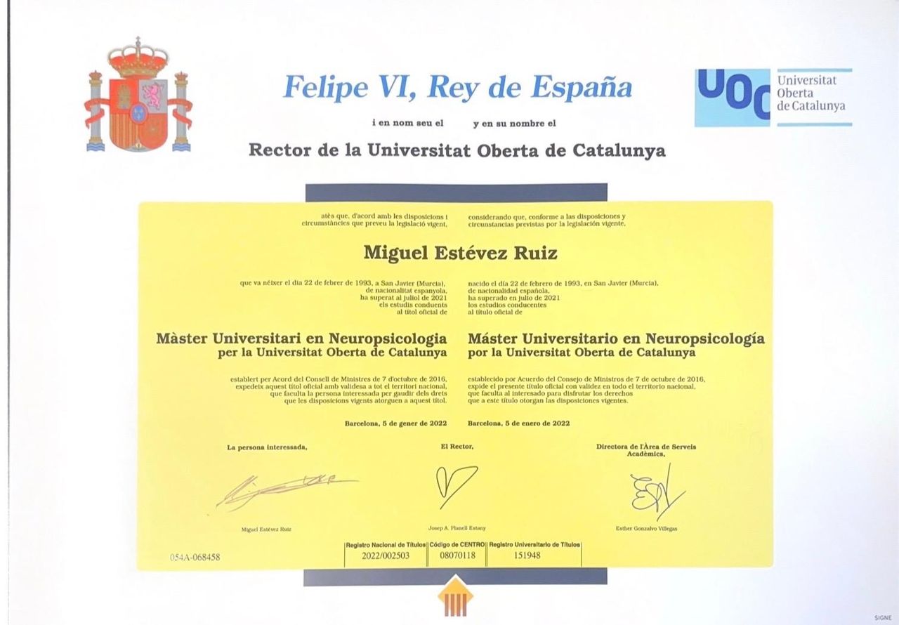 Soy neuropsicólogo, especializado en la evaluación y tratamiento de las funciones cognitivas y emocionales relacionadas con el funcionamiento del cerebro.