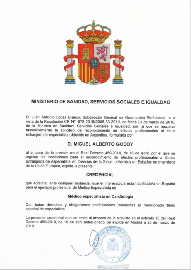 Después de visitar varios cardiólogos y hacer muchos exámenes y resonancias, encontré el Dr Godoy fue el único que encontró el origen del problema y el único que pidió ciertos exámenes que otros no me dieron . Ahora me siento muy bien gracias al doctor Godoy.