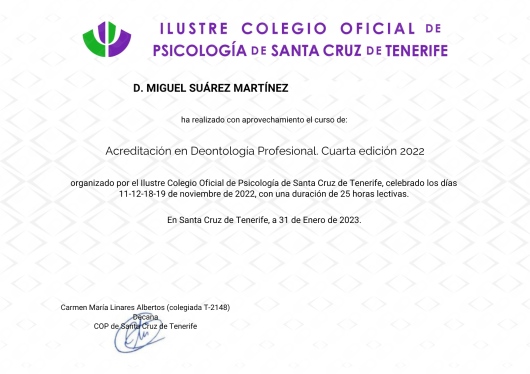 ¿Cuáles son las principales especialidades de Miguel Suárez Martínez?Miguel Suárez Martínez es psicólogo. Te mostramos algunos de los servicios que ofrece gracias a su trayectoria y amplia experiencia: Consulta online, Diagnóstico y tratamiento para la depresión, Diagnóstico y tratamiento para trastornos de ansiedad, Psicoterapia, Psicoeducación, Psicoterapia en adolescentes, Mindfulness, Psicoterapia individual, Reestructuración cognitiva, Técnicas de meditación y relajación.