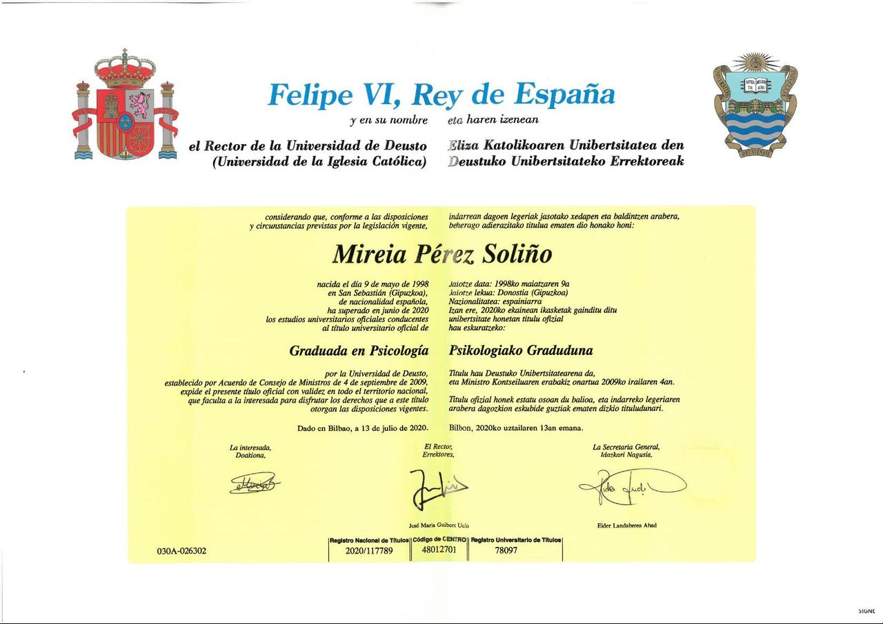 Soy Psicóloga licenciada por la Universidad de Deusto y he completado mi formación con 3 Másteres: en: Neurociencias, en Psicología de Urgencias y Emergencias, y en Psicología General Sanitaria. Atiendo tanto en euskera como en castellano.