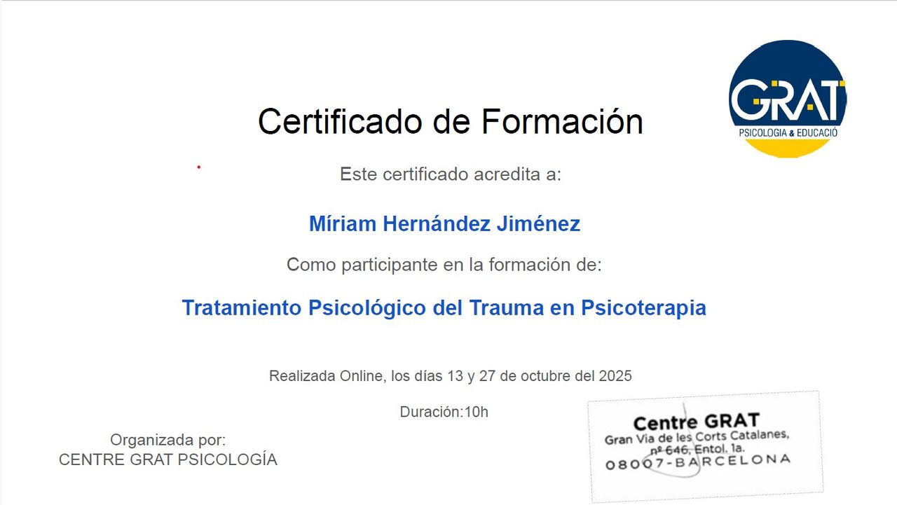 Estic encantada amb la Míriam. Proporciona un ambient segur on et pots expressar i sentir-te entesa, sense jutjar i anant una mica més enllà. Es preocupa per empatitzar amb la teva manera de veure i de viure les coses, sense recórrer a discursos preconcebuts ni caure en tòpics.