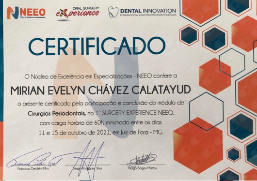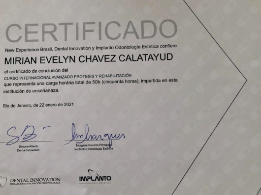 ¿Cuáles son las principales especialidades de Mirian Chávez Calatayud?Mirian Chávez Calatayud es dentista. Te mostramos algunos de los servicios que ofrece gracias a su trayectoria y amplia experiencia: Endodoncia, Implantes dentales, Limpieza dental, Ortodoncia, Periodoncia, Primera visita Odontopediatría, Prótesis dental fija, Prótesis dental removible, Primera visita Odontología, Odontología estética.