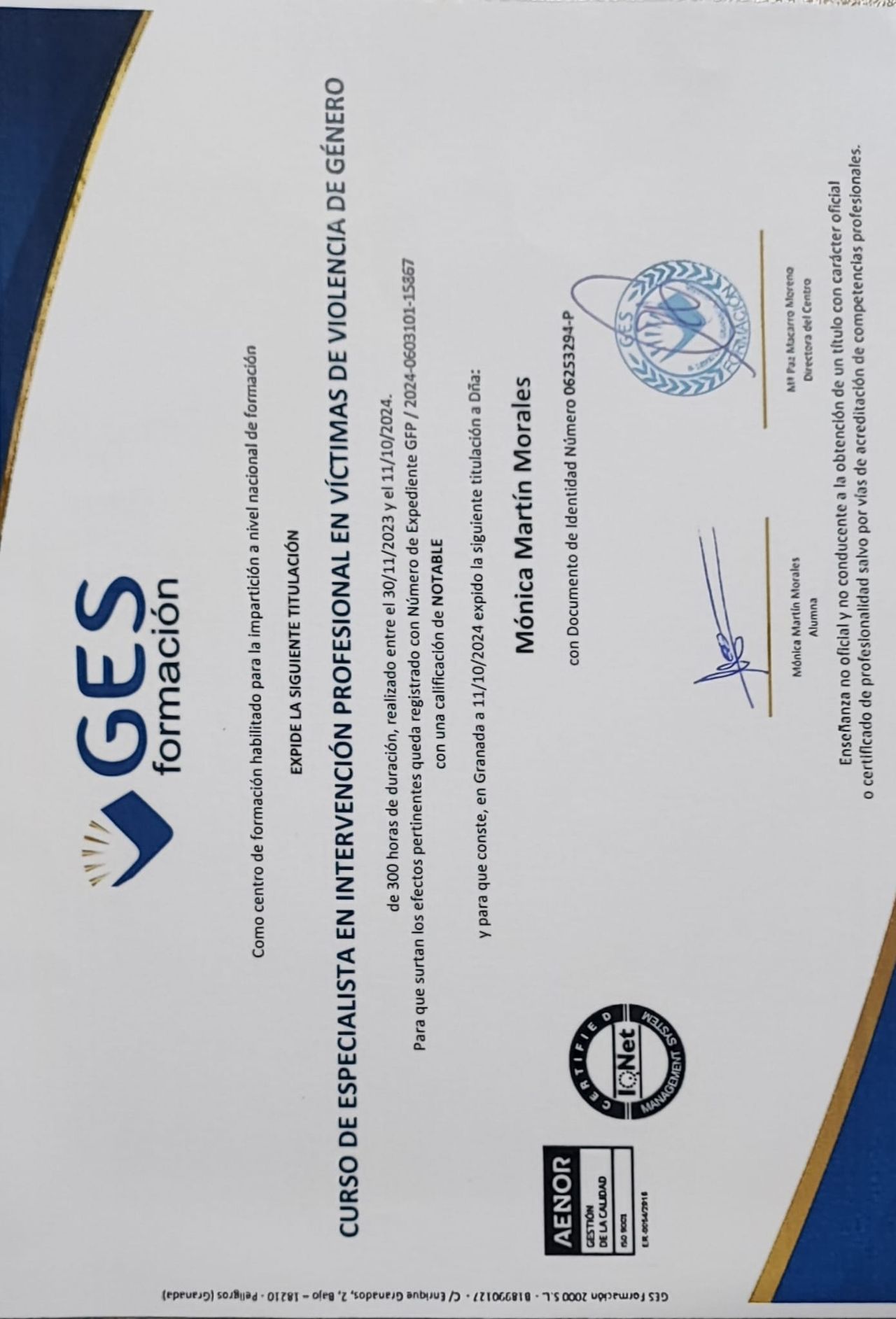 Soy psicóloga y actualmente continúo mi formación en el ámbito de la psicología sanitaria, con el objetivo de ofrecer una atención profesional basada en el respeto, la escucha y la comprensión de cada persona.