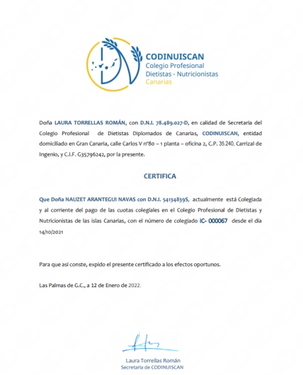 ¿Cuáles son las principales especialidades de Nauzet Arantegui Navas?Nauzet Arantegui Navas es dietista nutricionista. Te mostramos algunos de los servicios que ofrece gracias a su trayectoria y amplia experiencia: Primera visita Nutrición y Dietética, Consulta nutricional, Asesoramiento Nutricional, Asesoramiento en nutrición deportiva.
