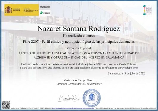 ¿Para cuándo podría visitarme con Nazaret Santana Rodríguez?A veces Nazaret Santana Rodríguez tiene algunas horas disponibles dentro de la misma semana o para la siguiente. Consulta su calendario: verás la primera hora que tiene disponible, ya que se actualiza en tiempo real. Si no te va bien esa primera hora, comprueba otros días. La reserva siempre es inmediata y gratuita.