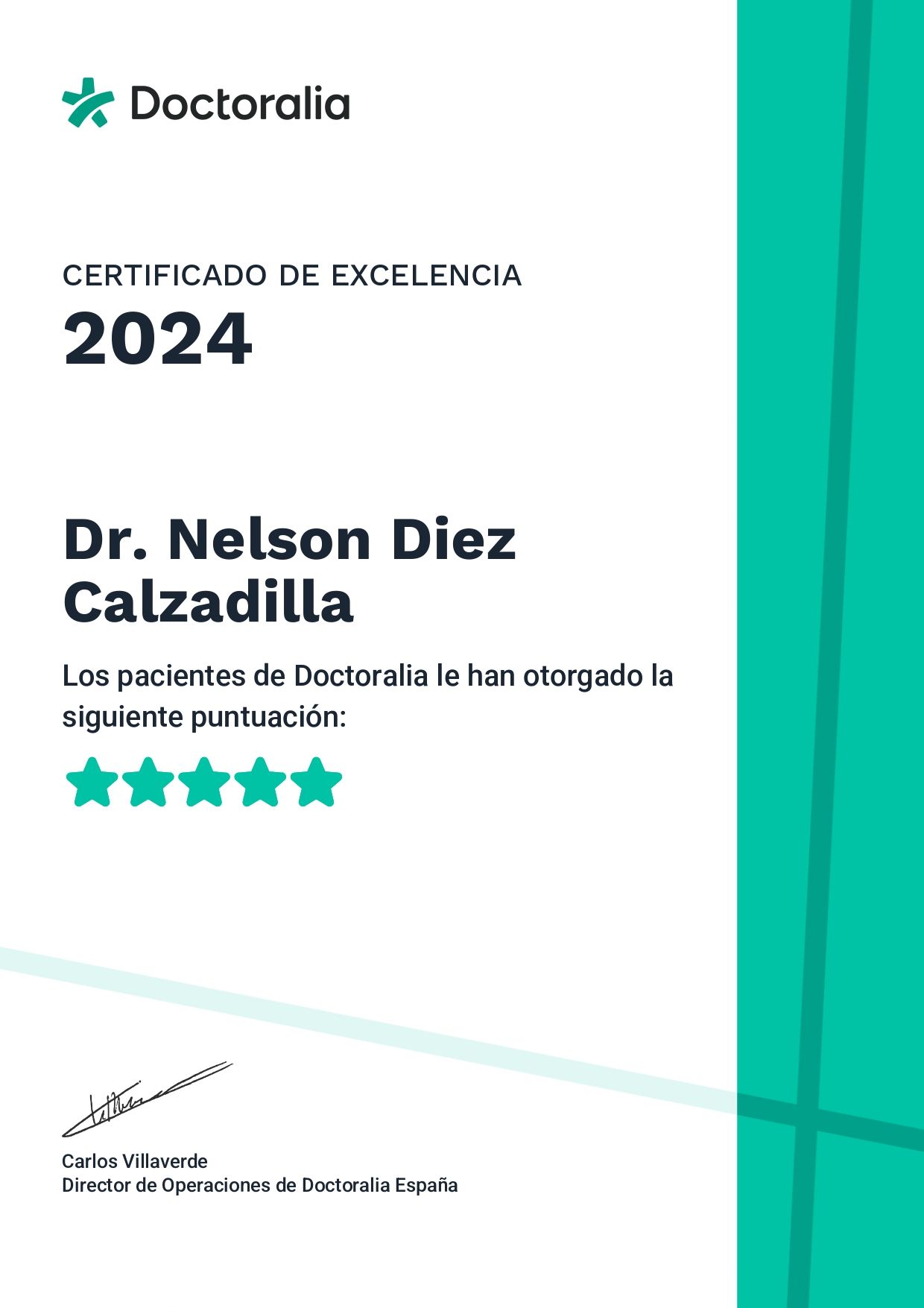 ¿Cómo puedo reservar una cita con Nelson Diez Calzadilla?El calendario que muestra Nelson Diez Calzadilla en Doctoralia está actualizado en tiempo real, por lo que solo tienes que elegir qué día y hora te va mejor de entre las disponibles. La reserva es gratuita, y además recibes un recordatorio antes de la visita.