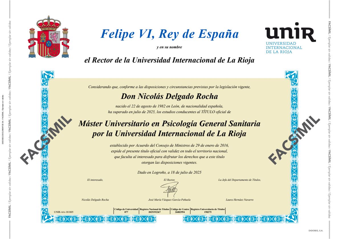 ¿Puedo hacer la visita con Nicolás Delgado Rocha de forma online, sin tener que desplazarme hasta su consulta?Sí, Nicolás Delgado Rocha ofrece consulta de forma remota. Solo tienes que seleccionar "consulta online" cuando vayas a reservar cita desde el calendario, y así podrás ver las fechas y horas disponibles.