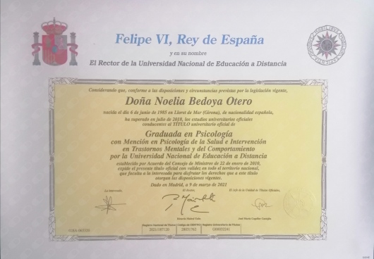 ¿Cuáles son las principales especialidades de Noelia Bedoya Otero?Noelia Bedoya Otero es psicóloga. Te mostramos algunos de los servicios que ofrece gracias a su trayectoria y amplia experiencia: Psicoterapia individual, Consulta de Psicología Sanitaria, Duelo traumático, Terapia de pareja, Terapia cognitivo-conductual, Terapia para tratar el estrés, Tratamiento para ataques de pánico, Tratamiento para bloqueos emocionales, Tratamiento para relaciones de dependencia, Tratamiento de los trastornos depresivos.