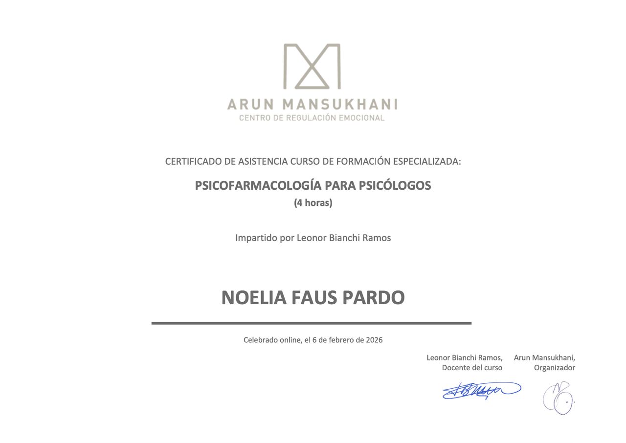 Estoy muy agradecida con la psicóloga Noelia. Desde el primer día me hizo sentir escuchada y comprendida, creando un espacio seguro y de confianza. Sus herramientas y acompañamiento me han ayudado mucho en mi proceso, notando una gran mejoría. La recomiendo totalmente por su profesionalidad, cercanía y dedicación.