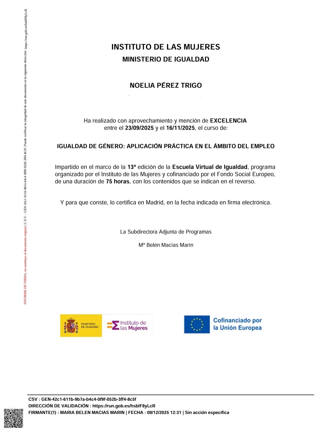 ¿Qué idiomas habla Noelia Pérez Trigo?Puedes comunicarte con Noelia Pérez Trigo en Español.