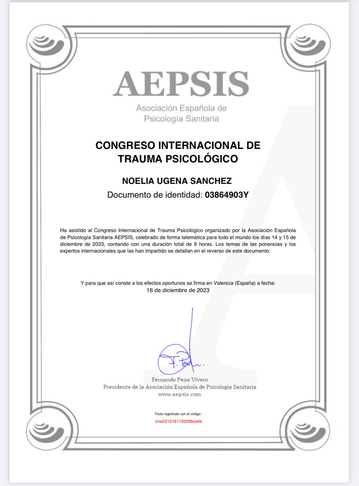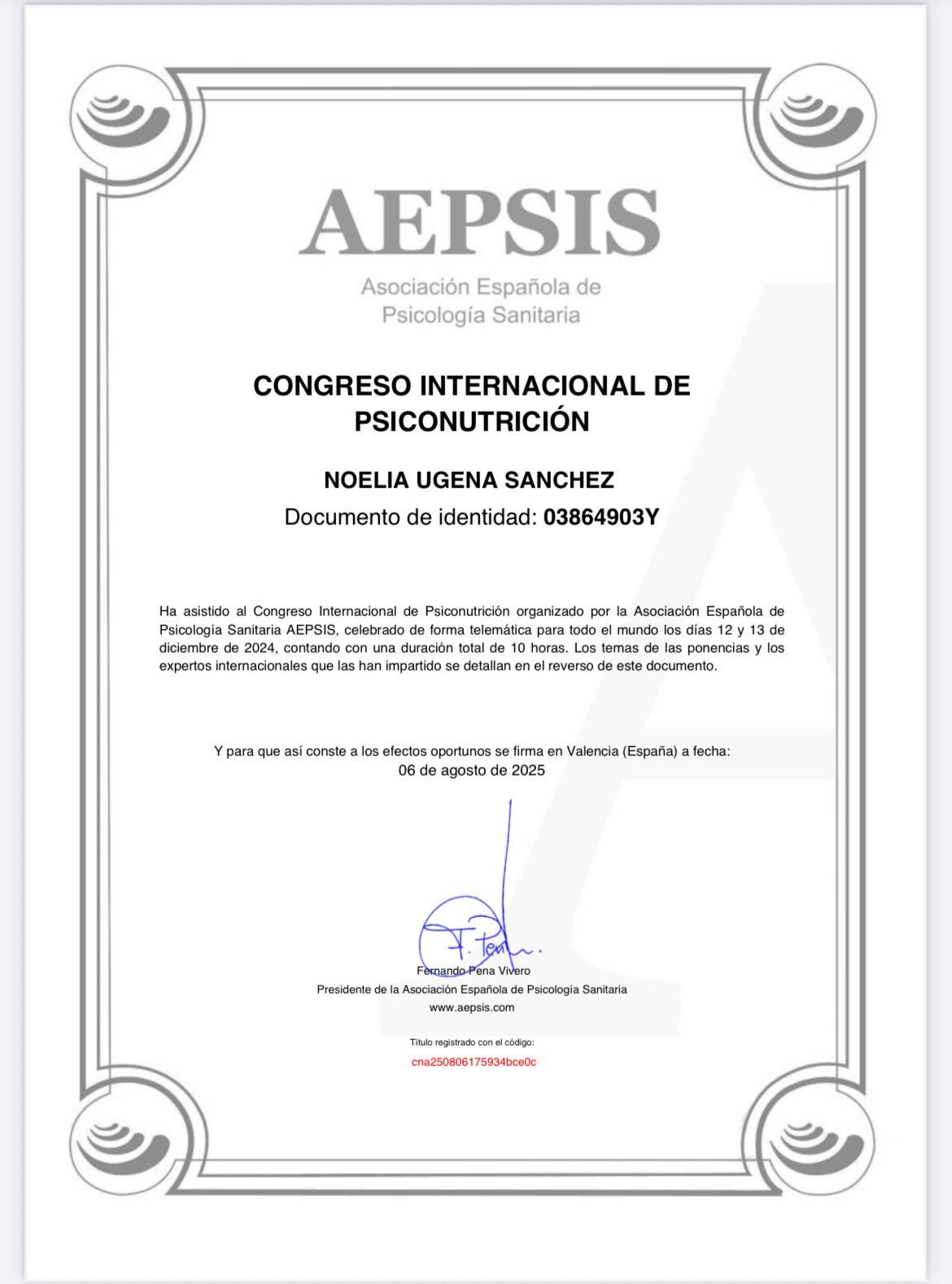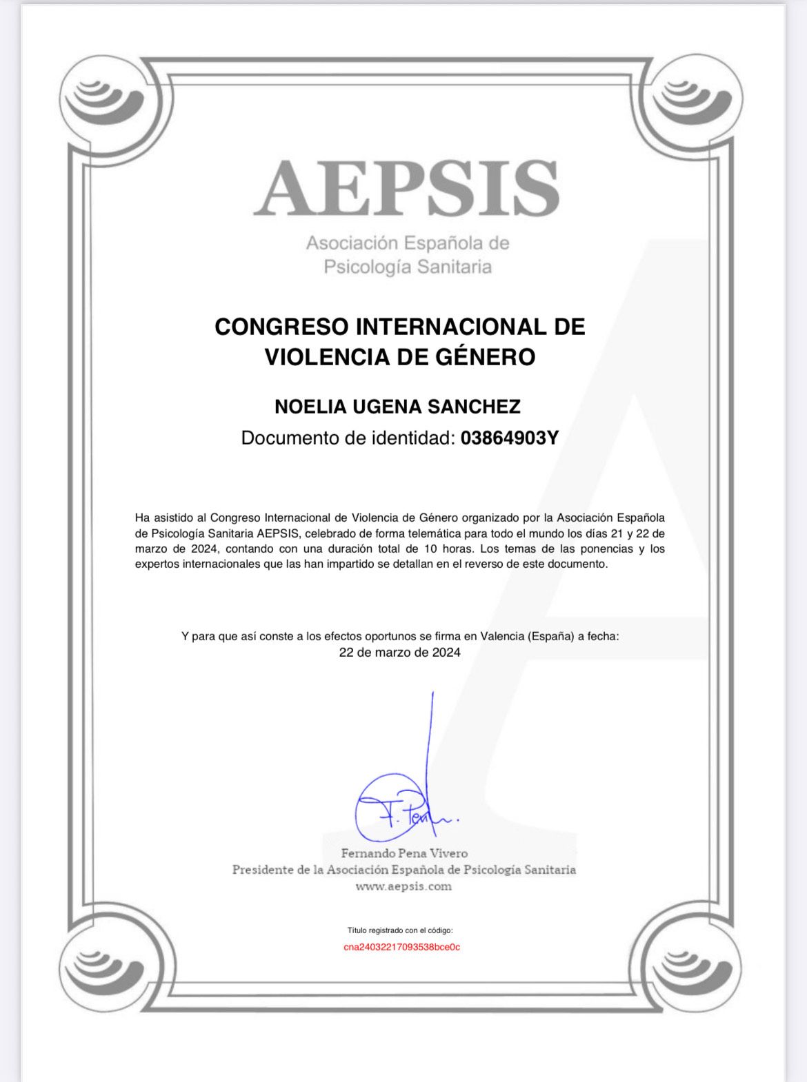 Es una excelente profesional y manifiesta una empatía y dedicación que no había encontrado hasta ahora. Después de deambular entre terapias y otros profesionales, he encontrado a Noelia, que con su trato cercano y humano me ha abierto mi camino hacia mi recuperación.