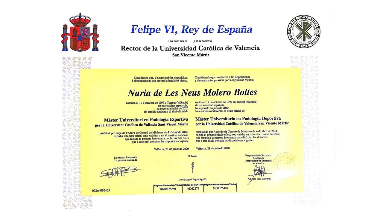 Soy podóloga graduada por la Universitat de València en 2019, con especialización en podología deportiva tras completar el máster en 2020.