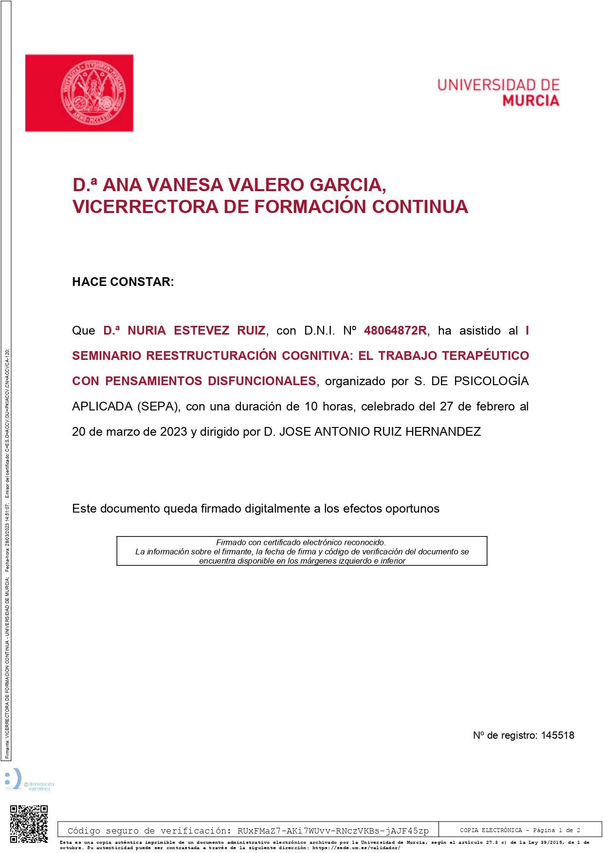 ¿Para cuándo podría visitarme con Núria Estévez Ruiz?A veces Núria Estévez Ruiz tiene algunas horas disponibles dentro de la misma semana o para la siguiente. Consulta su calendario: verás la primera hora que tiene disponible, ya que se actualiza en tiempo real. Si no te va bien esa primera hora, comprueba otros días. La reserva siempre es inmediata y gratuita.