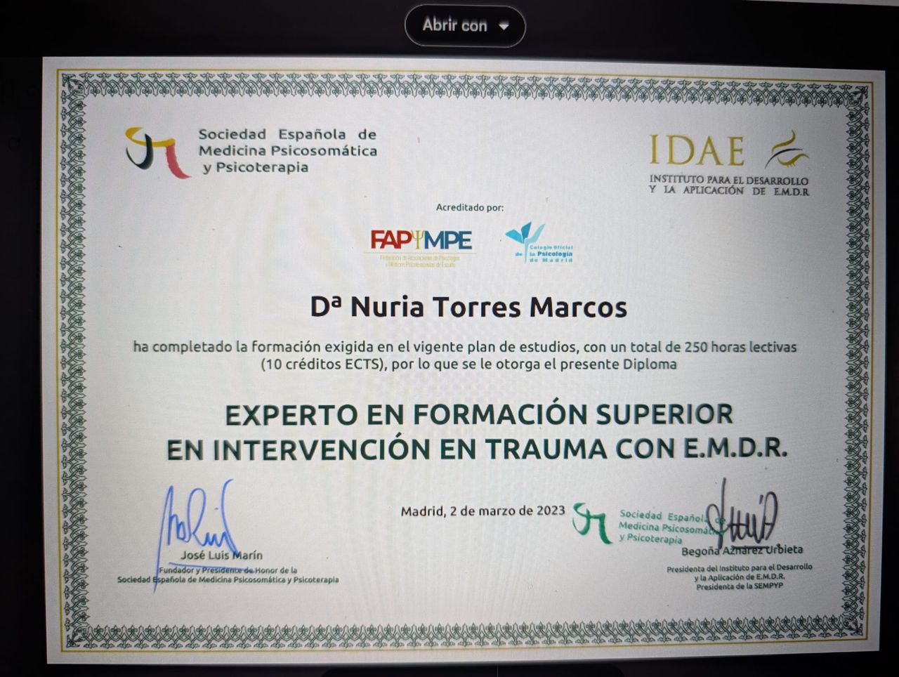 Nuria es una profesional cualificada con una escucha activa q reconforta mucho tras pasar consulta. La recomiendo al 1000 por 1000