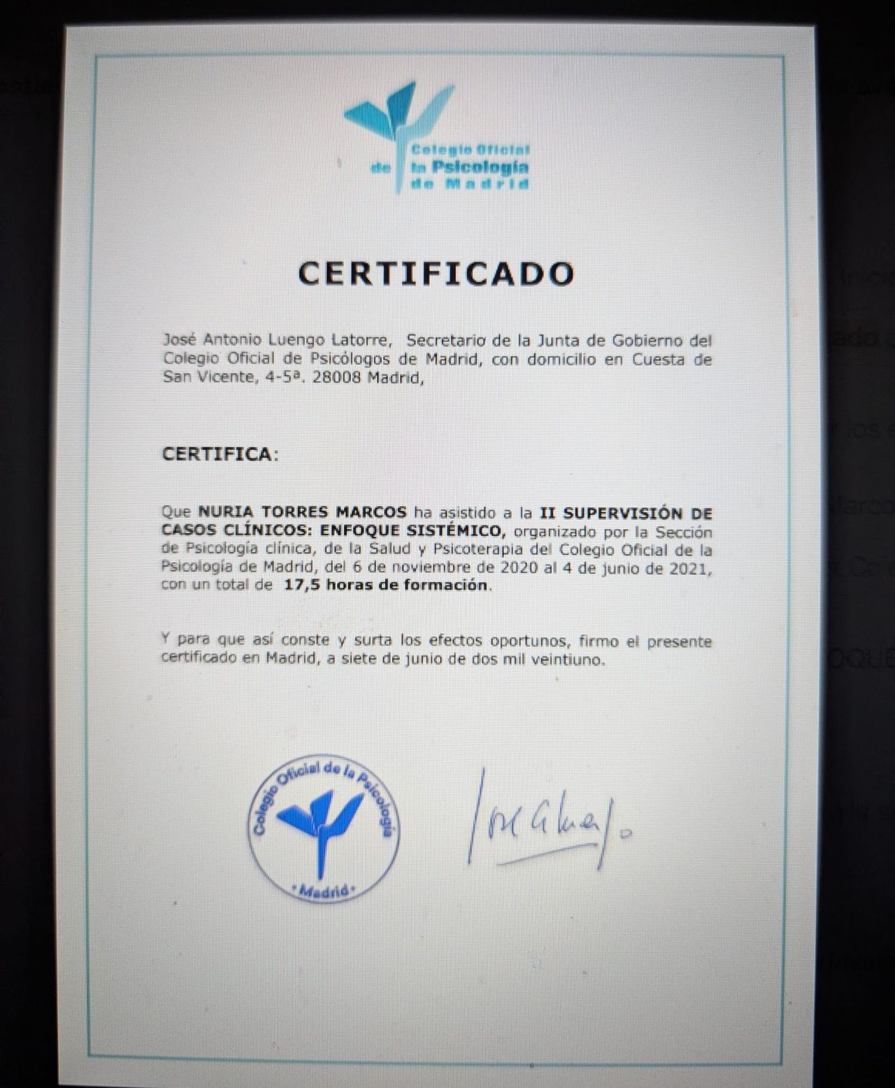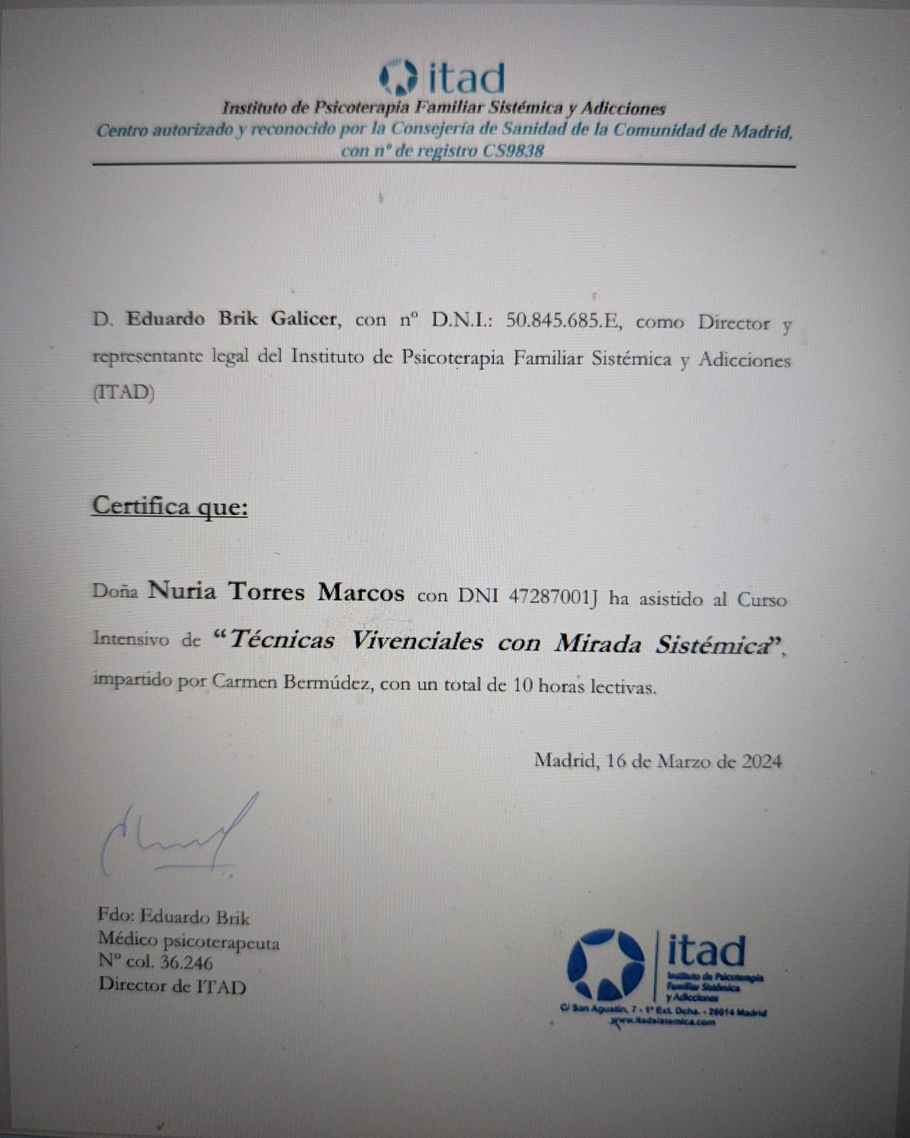 Núm. Colegiado: M-26071 Centro Sanitario CS19623