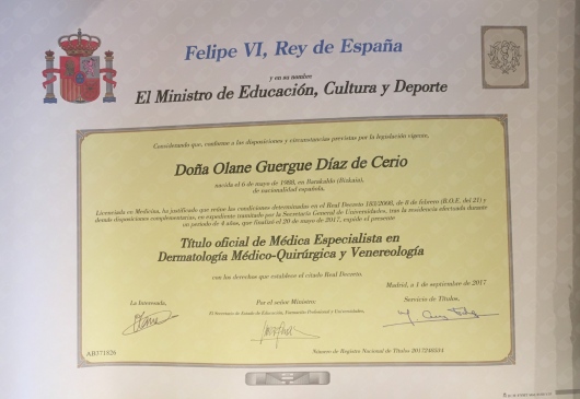 - Como FORMACIÓN ESPECIALIZADA cuento con un MÁSTER EN MEDICINA ESTÉTICA por la Academia Española de Dermatología y Venereología. Gracias al cual realizo gran parte de los tratamientos de DERMATOLOGÍA ESTÉTICA en MOOGUÉ, como BOTOX, ESTIMULADORES DE COLÁGENO, RELLENOS DE ÁCIDO HIALURÓNICO...