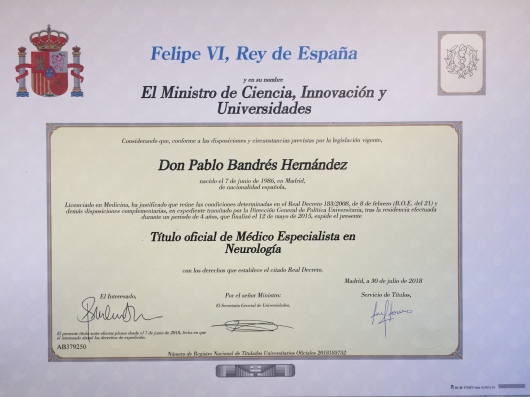 Gracias Pablo.• Consulta privada • Primera visita Neurología •