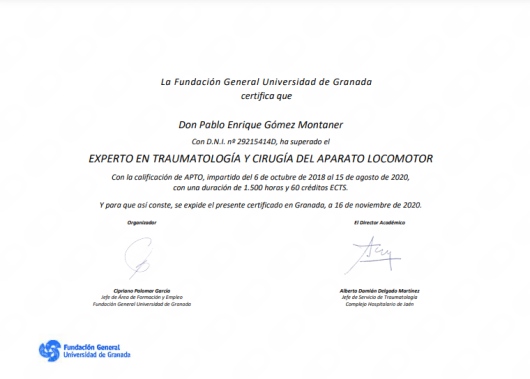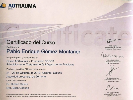 ¿Cuáles son las principales especialidades de Pablo Enrique Gómez Montaner?Pablo Enrique Gómez Montaner es traumatólogo. Te mostramos algunos de los servicios que ofrece gracias a su trayectoria y amplia experiencia: Visitas sucesivas Traumatología y Cirugía Ortopédica, Infiltraciones de Plasma Rico en Factores de Crecimiento (PRP), Infiltraciones guiadas por ecografía, Traumatología deportiva, Traumatologia pediátrica, Primera visita Traumatología y Cirugía Ortopédica, Primera visita Traumatología.