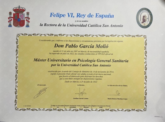 Me llamo Pablo García Molió y soy psicólogo General Sanitario especializado en población infantil y adolescente.