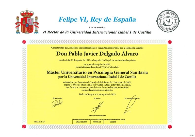 Graduado en Psicología por la Universidad Autónoma de Madrid. Máster en Psicología General Sanitaria (Universidad Isabel I) y Máster en Formación del Profesorado, especialidad en Orientación Educativa (UNED). Amplia experiencia en contextos clínicos y educativos en el abordaje integral de dificultades conductuales, emocionales, sociales y del aprendizaje. TDAH. Habilitación Sanitaria. N.º Col M-43262