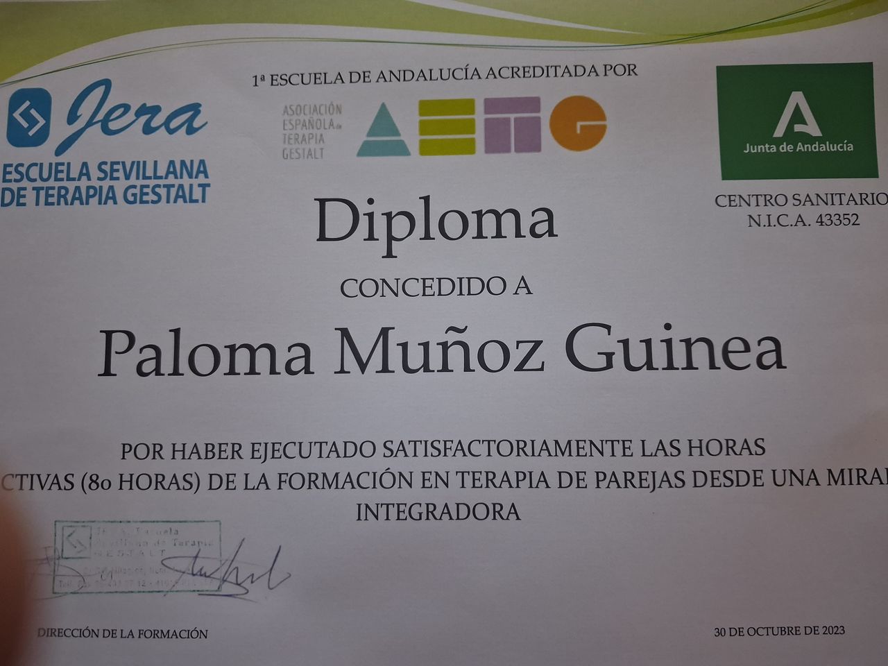¿Cuáles son las principales especialidades de Paloma Muñoz Guinea?Paloma Muñoz Guinea es psicóloga. Te mostramos algunos de los servicios que ofrece gracias a su trayectoria y amplia experiencia: Primera visita Psicología, Psicoterapia individual, Psicoterapia, Terapia de pareja, Consulta online.