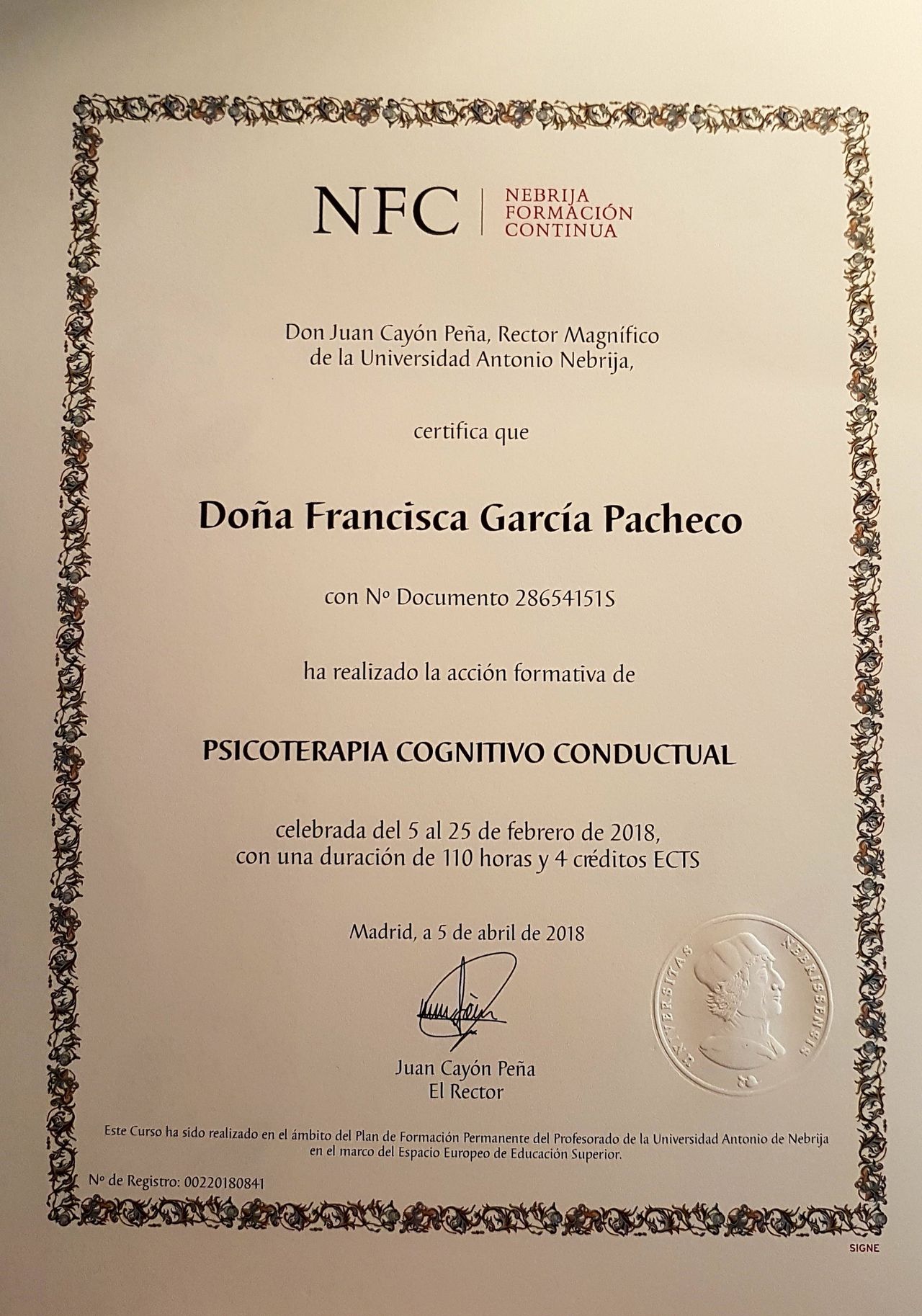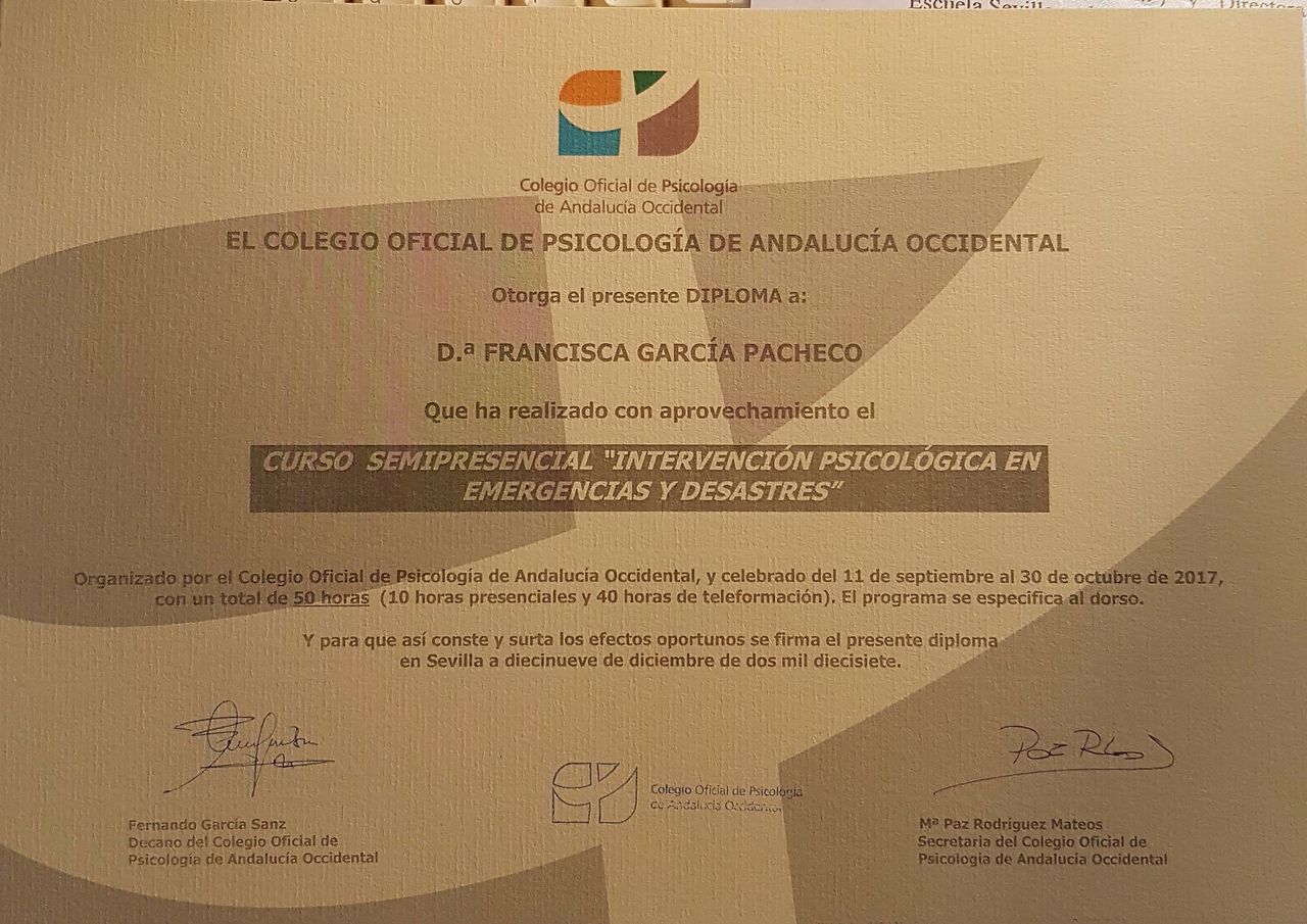¿Cuáles son las principales especialidades de Paqui García Pacheco?Paqui García Pacheco es psicóloga, psicóloga infantil. Te mostramos algunos de los servicios que ofrece gracias a su trayectoria y amplia experiencia: Terapia de pareja, Psicoterapia infantil, Psicoterapia individual, Psicoterapia en adolescentes, Visitas sucesivas Psicología, Mindfulness, Terapia de grupo de duelo (acompañamiento en pérdidas vitales), Visita Psicología, Visita domiciliaria Psicología, Terapia online.