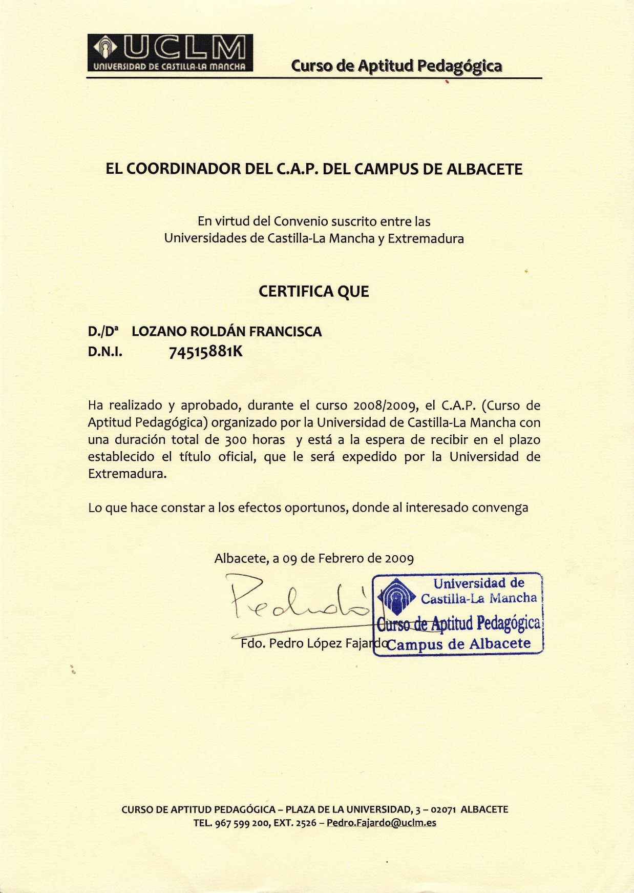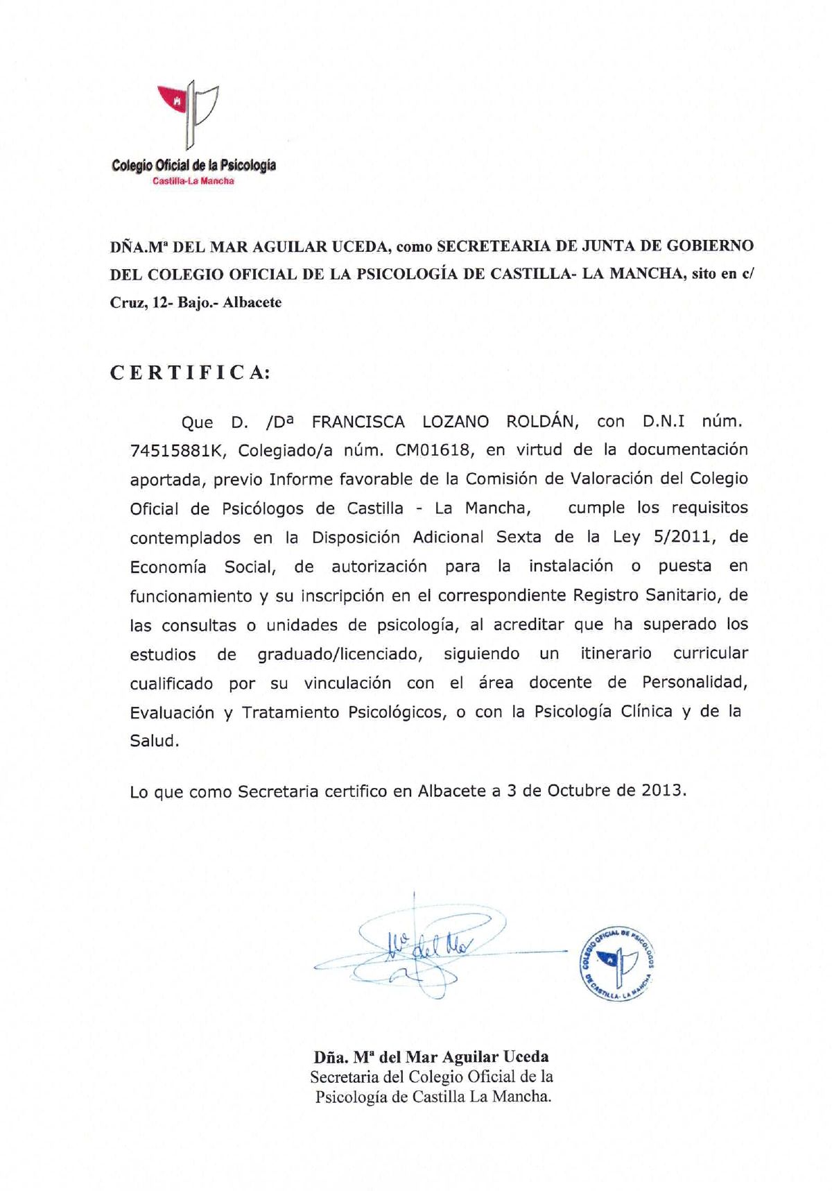 Núm. Colegiado: CM01618