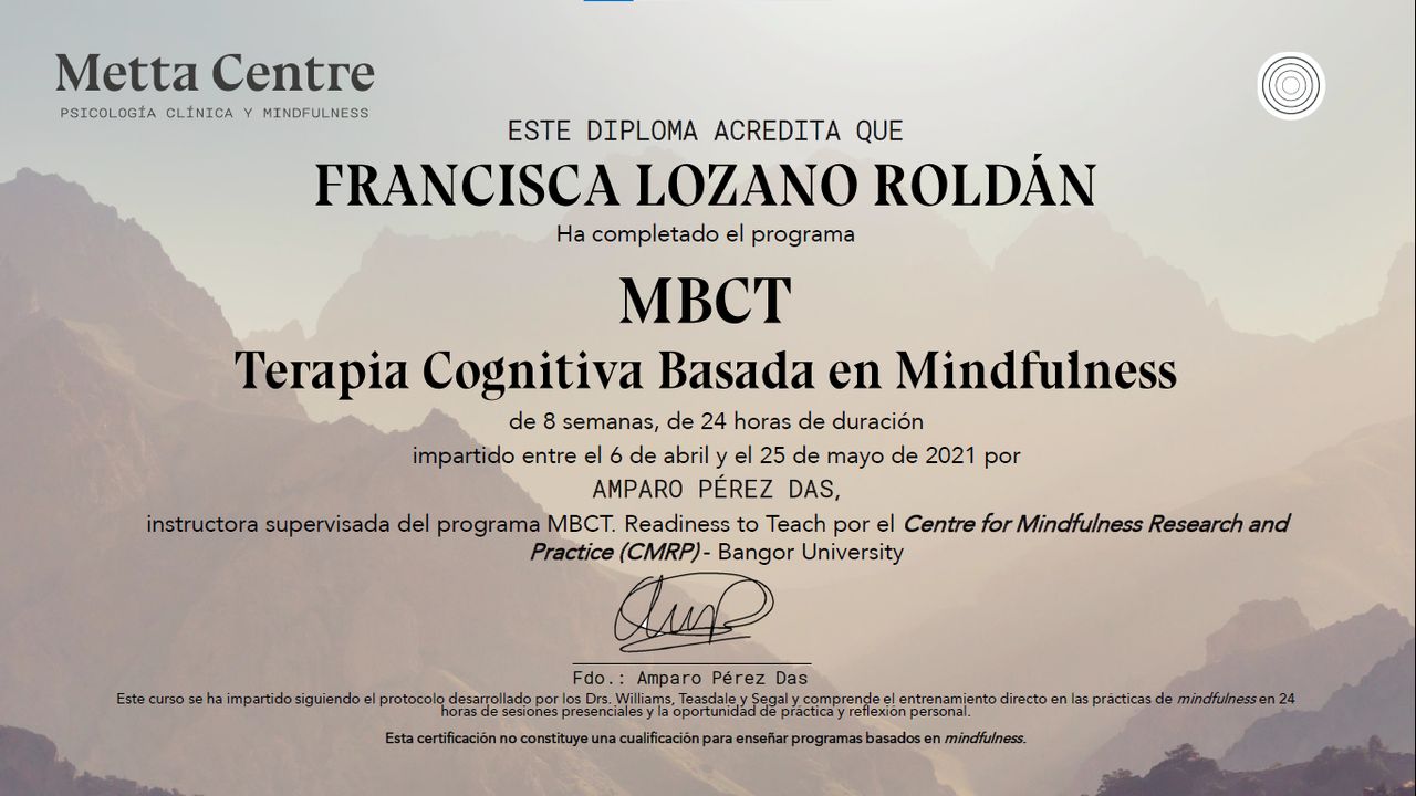 Terapia Cognitiva basada en Mindfulness (MBCT).