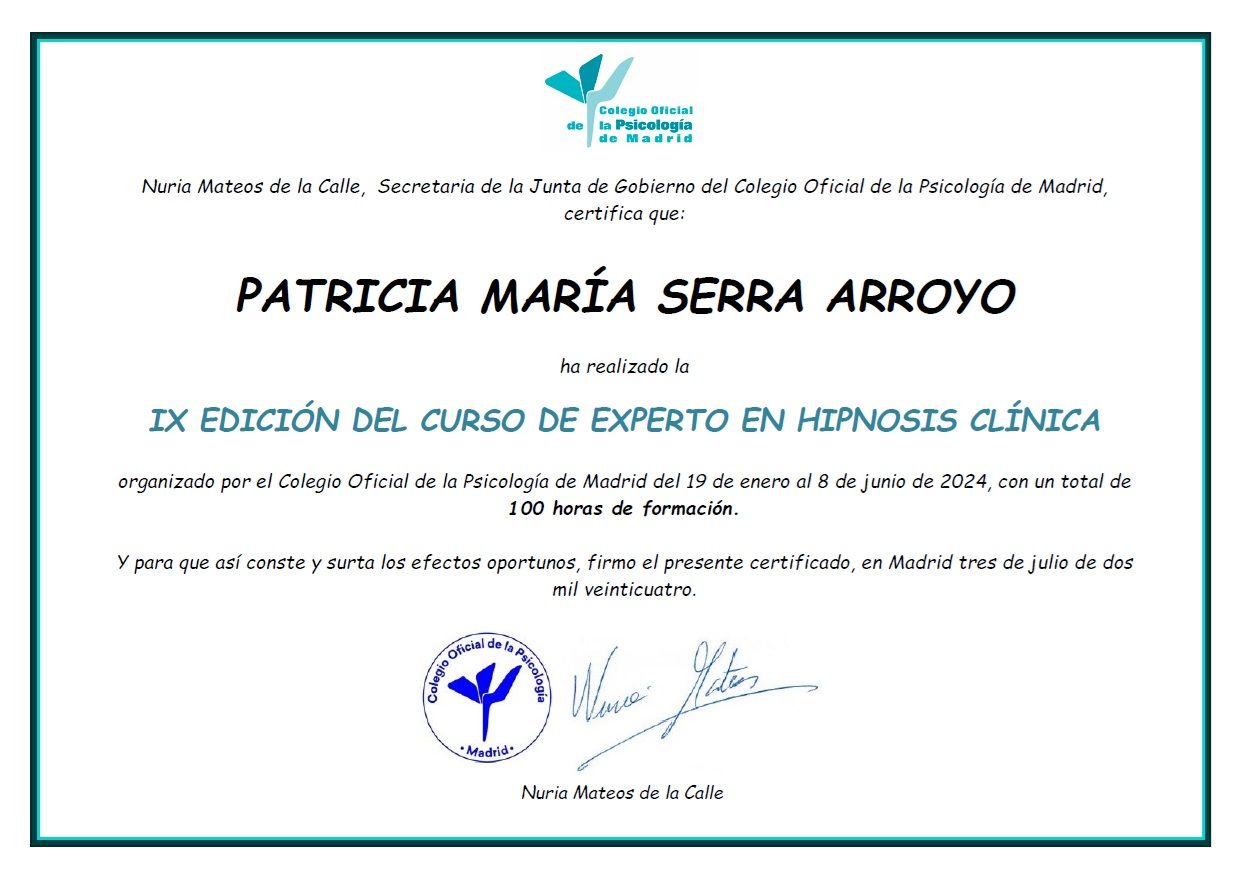 ¡Hola! Me presento: me llamo Patricia y tengo larga experiencia como psicóloga en centros públicos y privados, así como una larga trayectoria de formación, porque estoy continuamente actualizándome, pues adoro mi trabajo y soy muy curiosa y apasionada de la psicología y por ello aprovecho cualquier oportunidad para aprender sobre mi campo.