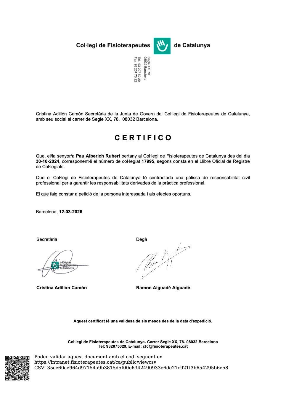 • Grado en Fisioterapia por la Universidad Internacional de Catalunya.