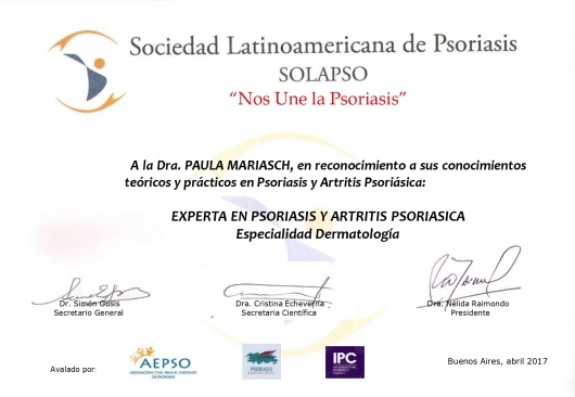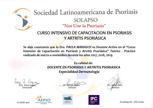 Docente de la Maestría en Psoriasis de la Sociedad Latinoamericana de Psoriasis (SOLAPSO).