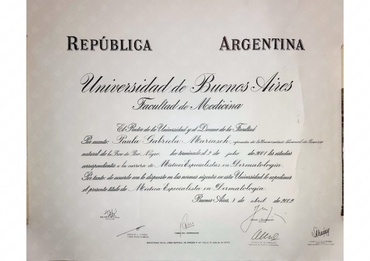 Egresada como Médica por la Universidad Nacional de Rosario, cuento con una sólida trayectoria de más de 20 años en el ámbito de la salud. Inicié mi formación de postgrado con la residencia en Clínica Médica en la Clínica Bazterrica, obteniendo el título de Especialista en Medicina Interna por la Universidad de Buenos Aires (UBA). Posteriormente, profundicé mi especialización en el área dermatológica tras completar mi residencia en el Hospital J.M. Ramos Mejía, donde obtuve el título de Especialista Universitaria en Dermatología (UBA, 2001).
