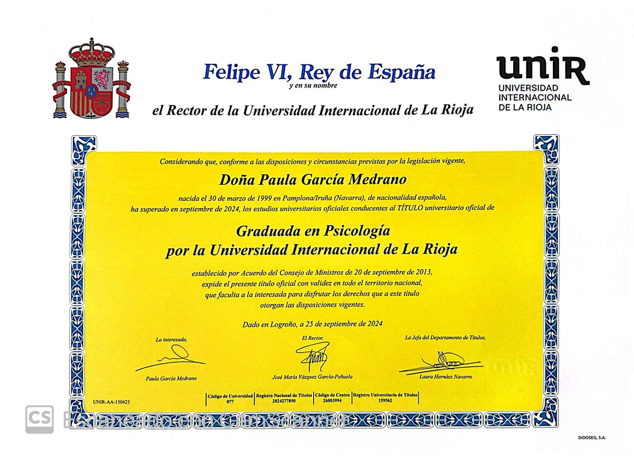 Soy Paula García Medrano, Psicóloga General Sanitaria. Acompaño a adultos y adolescentes que están atravesando momentos de ansiedad, bloqueo emocional, inseguridad o dificultades en su bienestar psicológico.