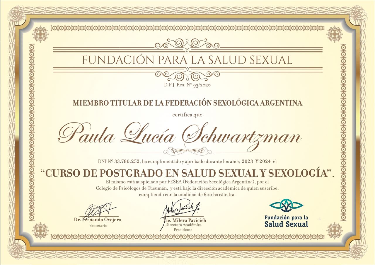 ¿Cuáles son las principales especialidades de Paula Lucía Schwartzman?Paula Lucía Schwartzman es médico general, sexólogo. Te mostramos algunos de los servicios que ofrece gracias a su trayectoria y amplia experiencia: Profilaxis post-exposición (PEP), Profilaxis pre-exposición (PrEP), Tratamiento del chemsex, Tratamiento y diagnóstico para Enfermedades de Transmisión Sexual (ETS), Consulta condilomas genitales o infección por virus del papiloma humano (VPH), Tratamiento para la disfunción eréctil, Tratamiento para disfunciones sexuales, Tratamiento hormonal sustitutivo (THS), Tratamieno para candidiasis, Asesoramiento a padres y madres en educación afectivo sexual a hijos/as LGTBIQ+.