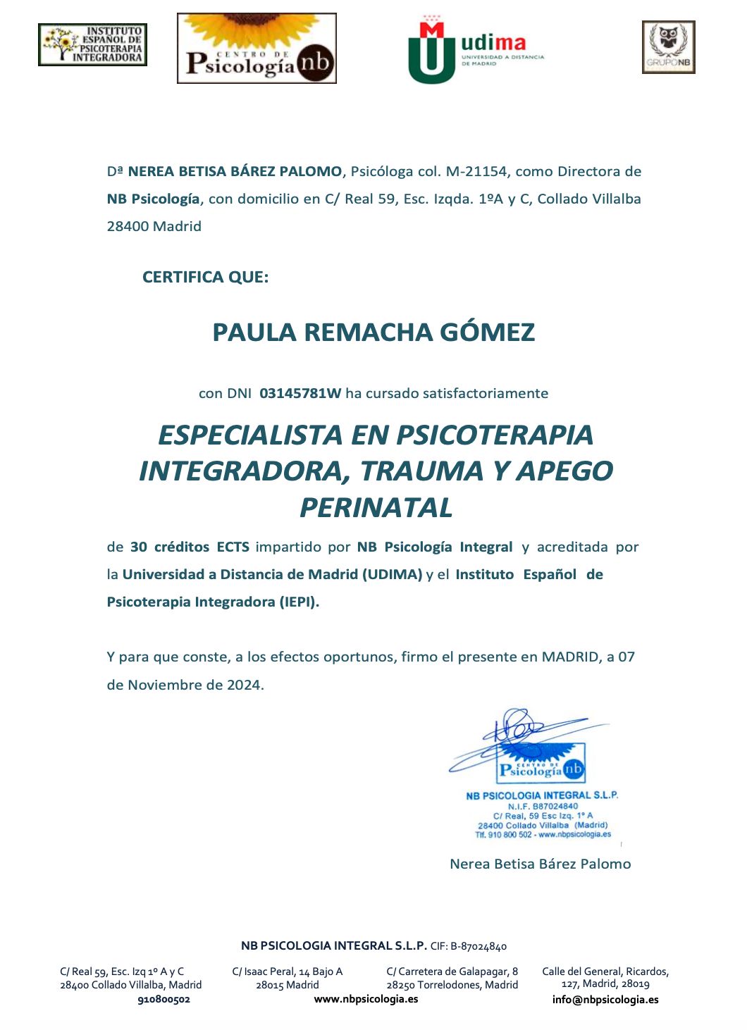 Núm. Colegiado: M-44187