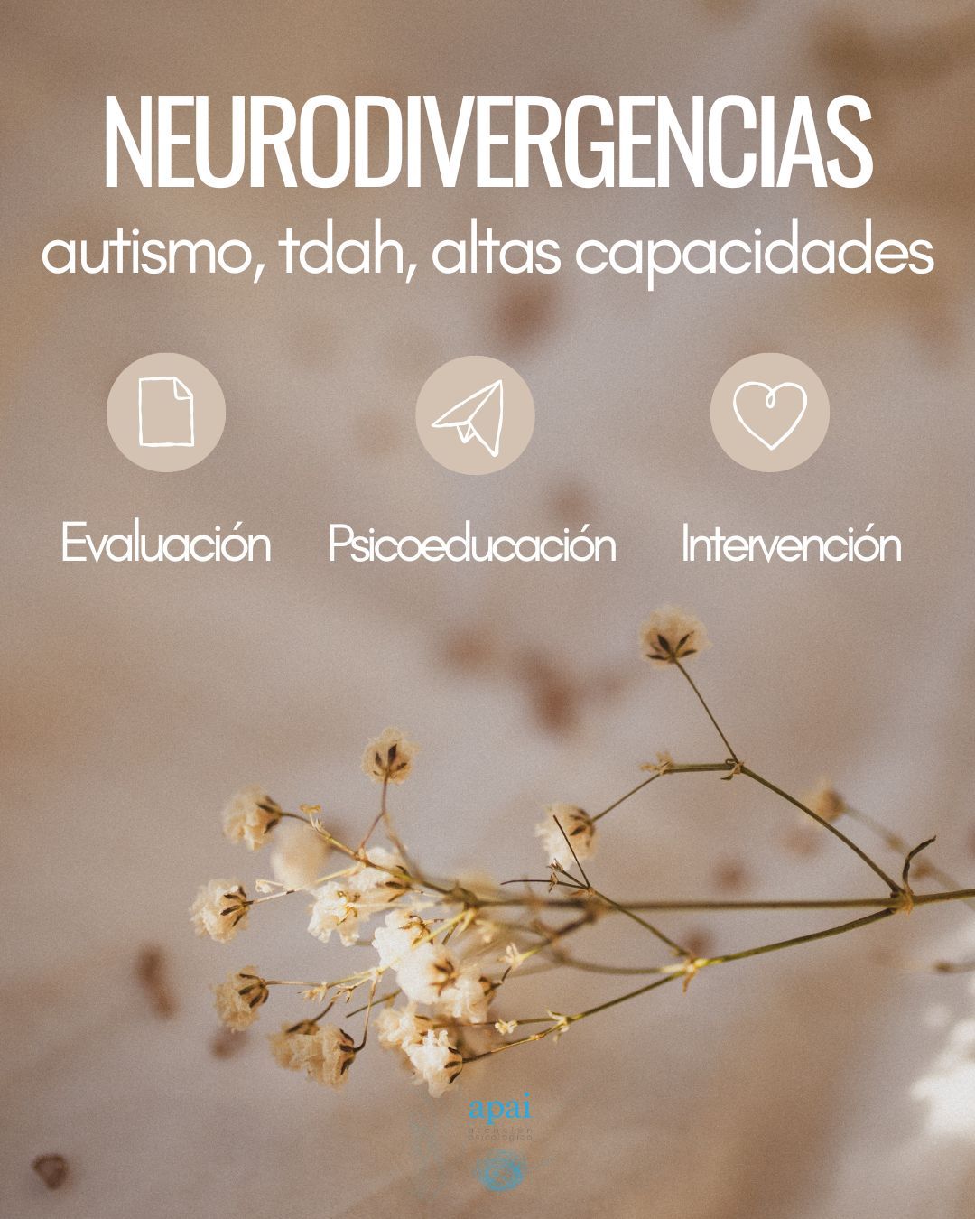 Soy experta en evaluación y acompañamiento a personas neurodivergentes: autismo, atención divergente (TDAH), altas capacidades y múltiples excepcionalidades, tanto en población infanto-juvenil como adulta. Presto especial atención a personas cuyas características puedan estar enmascarando una identificación correcta: mujeres autistas y mujeres con altas capacidades o doble excepcionalidad donde el sesgo de género o el uso de instrumentos no adaptados a la población femenina puede dificultar la detección.