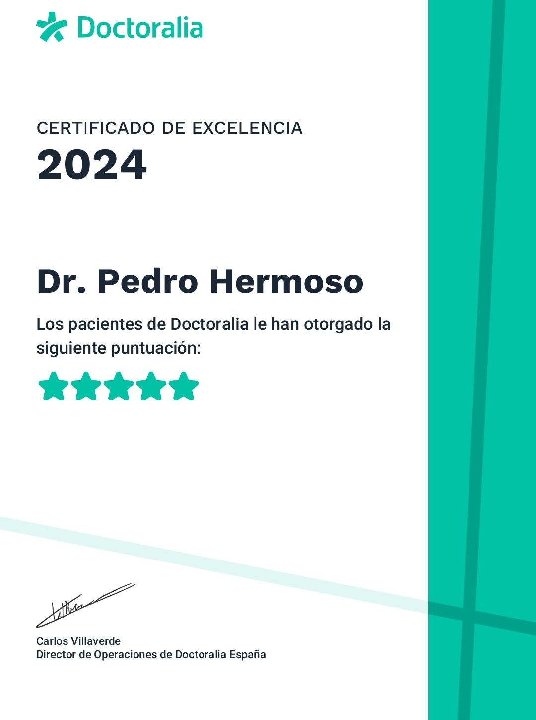 ¿Puedo hacer la visita con Pedro Hermoso de forma online, sin tener que desplazarme hasta su consulta?No, por el momento Pedro Hermoso no ofrece consulta online.