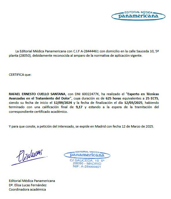 Experto en Técnicas Avanzadas en el Tratamiento del Dolor