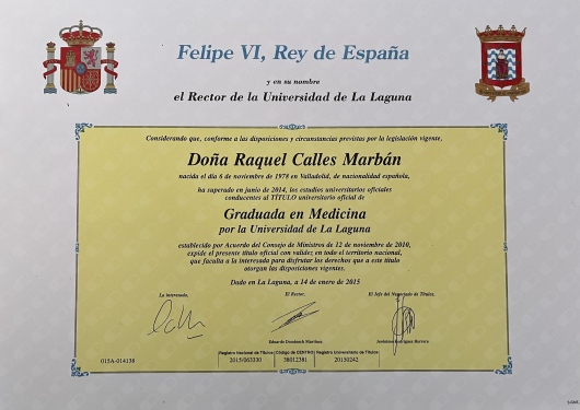 -Título de Grado en Medicina por la Universidad de La Laguna, Tenerife, 2014.