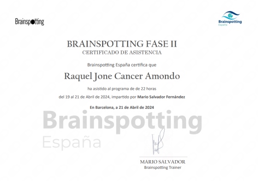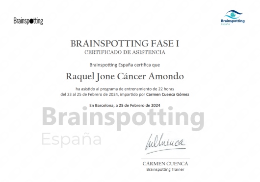 Brainspotting: Técnica de neuroprocesamiento que identifica una posición ocular conectada a una red neuronal donde está encapsulada la experiencia a procesar y liberar. Es un tratamiento fisiológico con efectos a nivel psicológico.