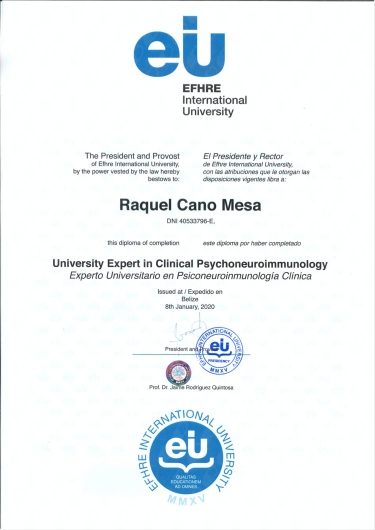 "Mi trabajo se ha convertido en mi pasión, porque creo firmemente en la Terapia y en la Psiconeuroinmunología (PNI). He aprendido a vivir en coherencia con ello y por eso disfruto ayudando a mis pacientes a superar la ansiedad, fortalecer su autoestima y a mejorar su estado físico y emocional."