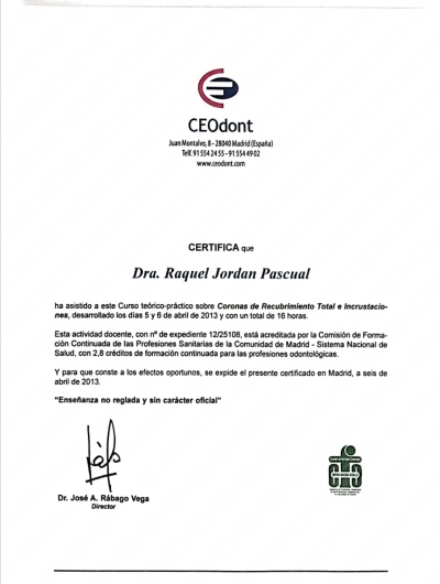 -Curso teórico-práctico sobre Coronas de Recubrimiento Total e Incrustaciones, Ceodont 2013