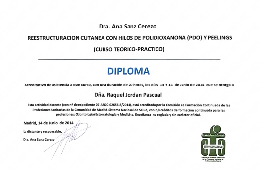-Curso teórico- Práctico de reestructuración cutánea con hilos de polidioxanona y peelings, Madrid Dra.Sanz 2014