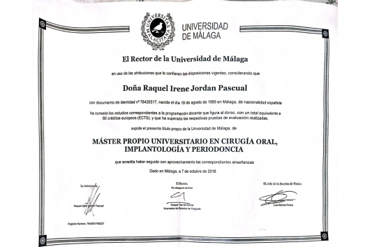 -Máster Propio Universitario en Cirugía Oral, Implantología y Periodoncia, Málaga 2016