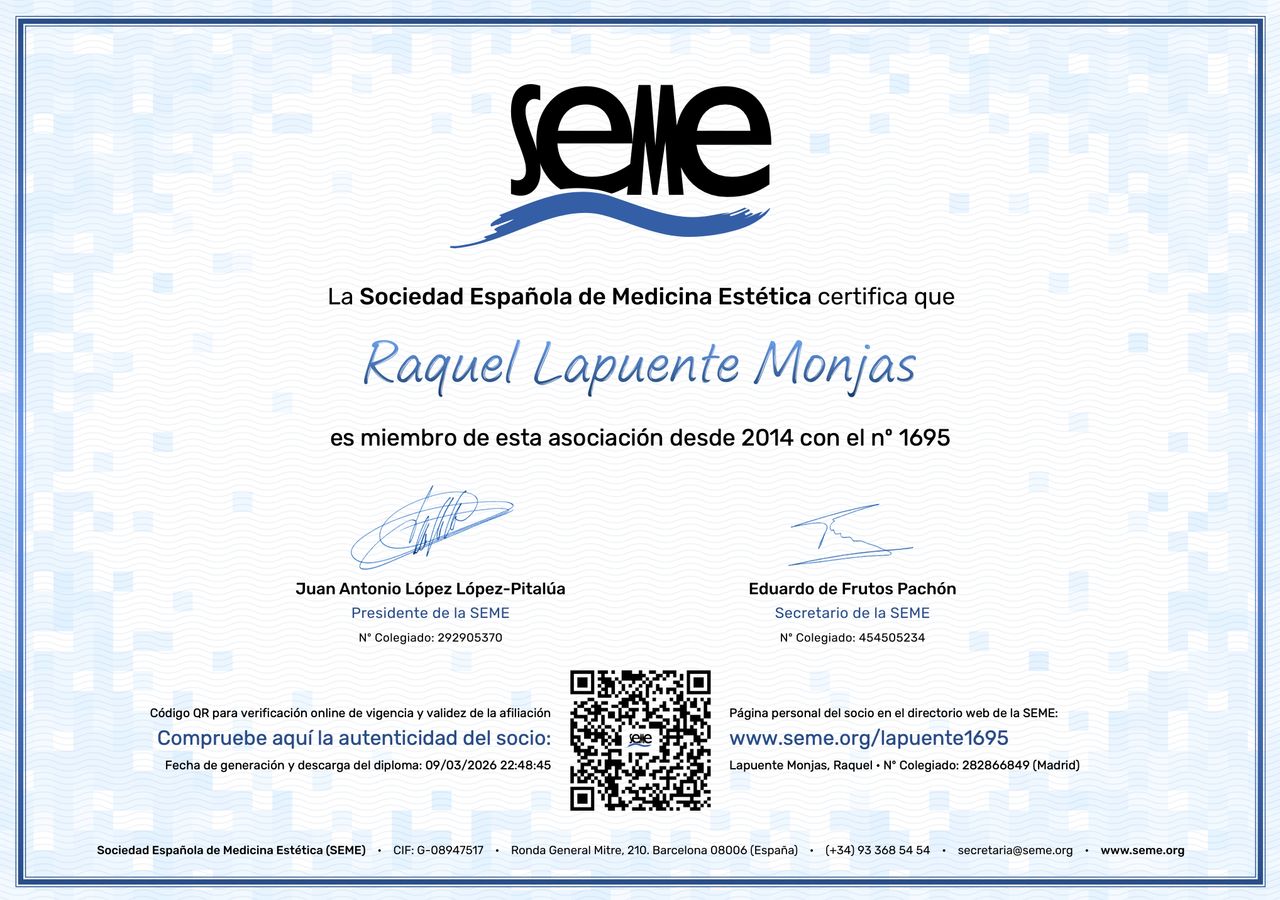 ¿Cuáles son las principales especialidades de Raquel Lapuente Monjas?Raquel Lapuente Monjas es médica estética, oftalmóloga. Te mostramos algunos de los servicios que ofrece gracias a su trayectoria y amplia experiencia: Primera visita Oftalmología, Medicina estética, Consulta de valoración de Medicina Estética.